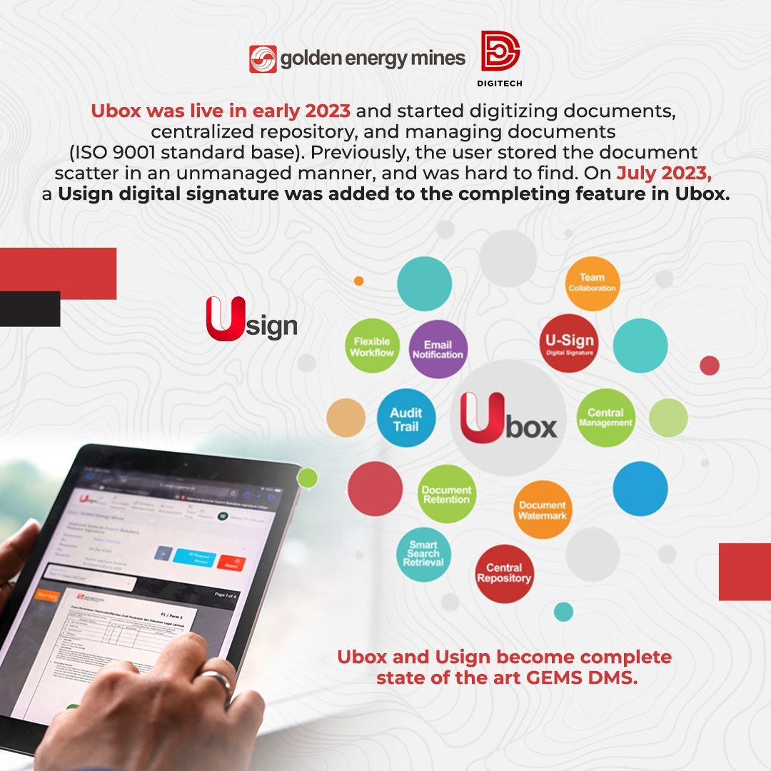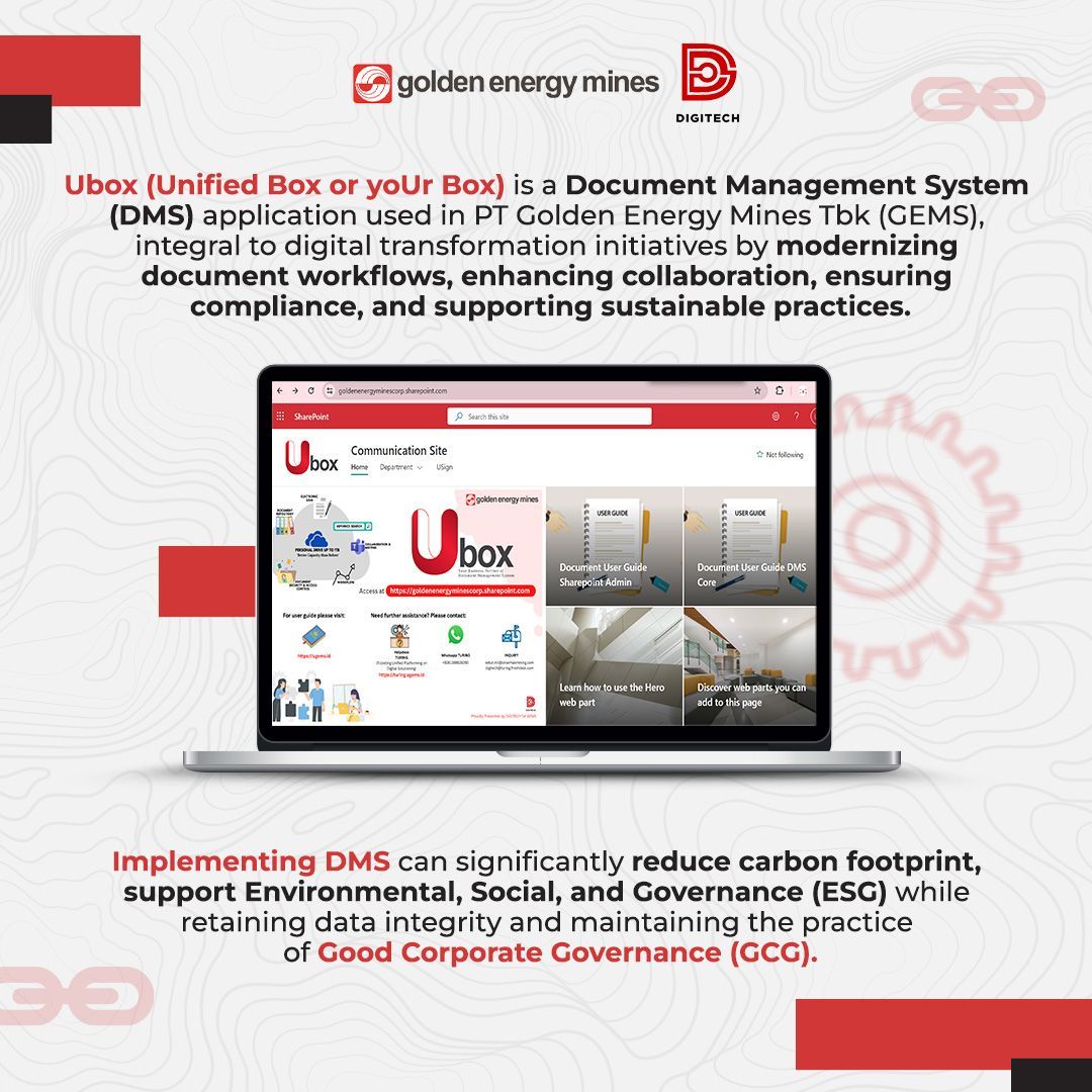 Aligned with our digital transformation, PT Golden Energy Mines Tbk (GEMS) has presented Ubox since 2023 to simplify and modernize the Document Management System (DMS) workflow. Wahyu Tri Adiyasa as Technology Expert of DigiTech explained the advantages of Ubox which are very influential in reducing carbon prints and supporting Environmental, Social and Governance (ESG). By implementing Ubox, we hope to continue to carry out operational efficiency and also continue to be committed to environmental stewardship and sustainability. #TechConnect #GoldenEnergyMines #GEMS #Ubox #DocumentManagementSystem